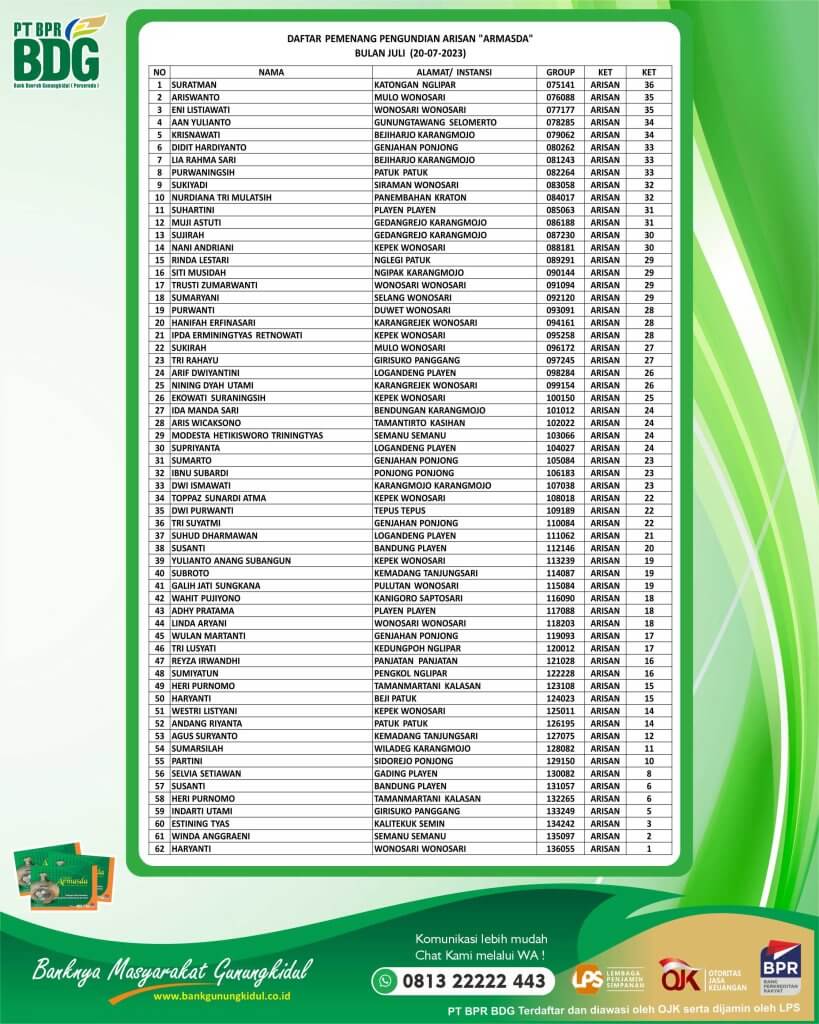 DAFTAR PEMENANG PENGUNDIAN ARISAN “ARMASDA” BULAN JULI 2023