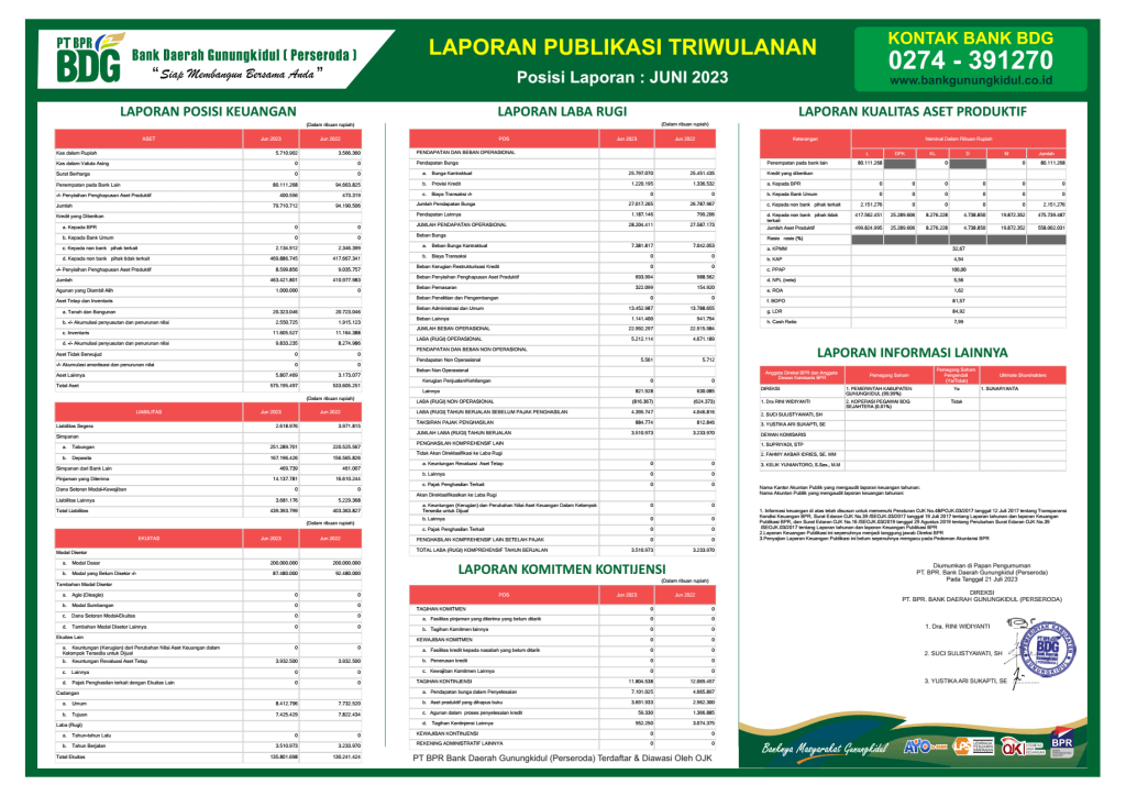 PT BPR Bank Daerah Gunungkidul (Perseroda) telah meraih penghargaan pada acara Infobank BPR Award 2023 Atas Kinerja Keuangan Tahun 2022 dengan predikat : “Sangat Bagus”