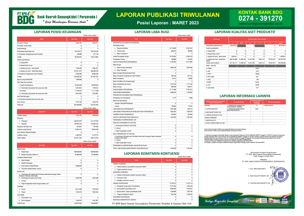 Informasi operasional PT BPR Bank Daerah Gunungkidul (Perseroda), sehubungan dengan adanya cuti bersama tahun 2023 dan Hari Raya Idul Fitri 1444 H