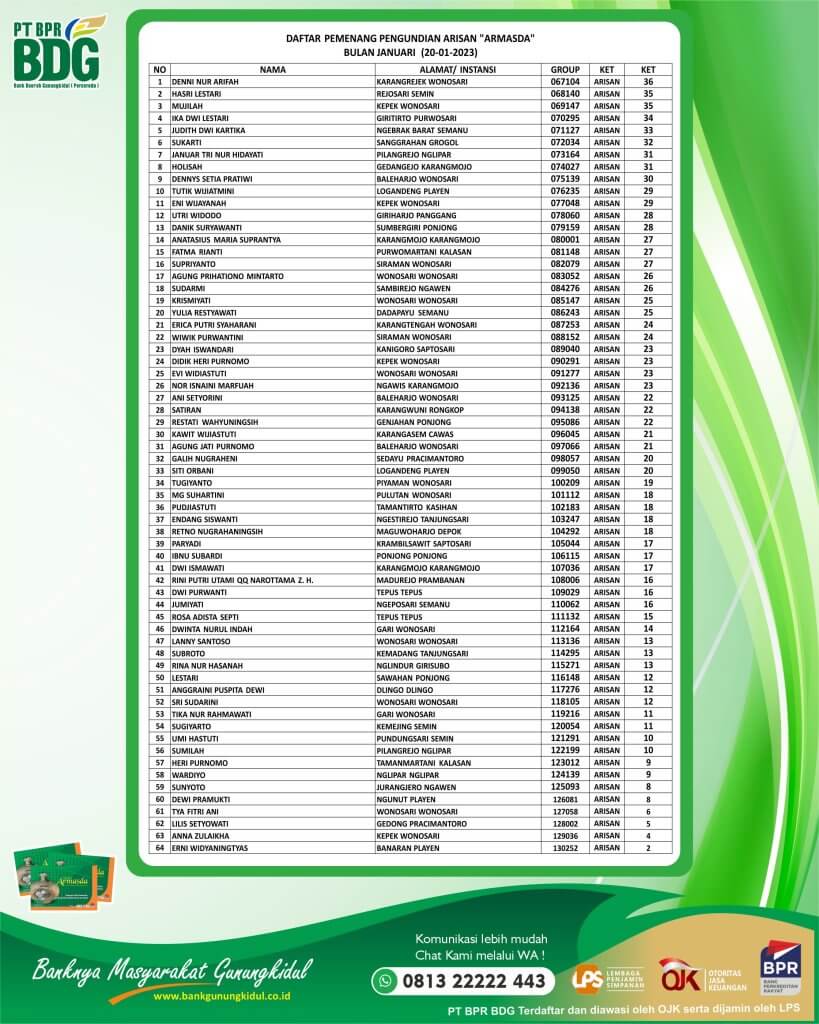 DAFTAR PEMENANG PENGUNDIAN ARISAN “ARMASDA” BULAN JANUARI 2023