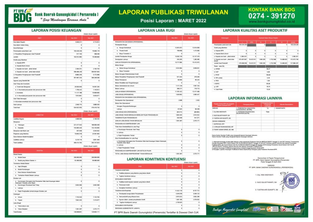 Informasi keuangan berikut telah disusun untuk memenuhi Surat Edaran Otoritas Jasa Keuangan Nomor 39/SEOJK.03/2017 tentang Laporan Tahunan dan Laporan Keuangan Publikasi Bank Perkreditan Rakyat.