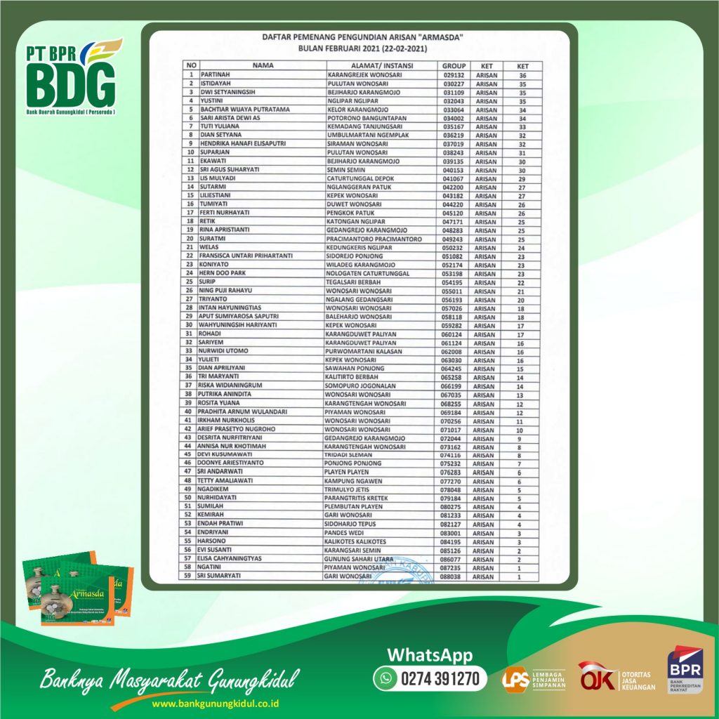 DAFTAR PEMENANG PENGUNDIAN ARISAN “ARMASDA” BULAN FEBRUARI 2021