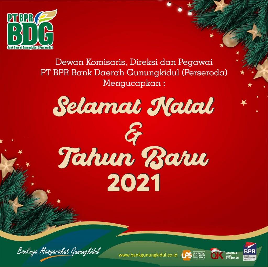 Dewan Komisaris, Direksi dan Pegawai PT BPR Bank Daerah Gunungkidul (Perseroda) Mengucapkan : SELAMAT HARI NATAL DAN TAHUN BARU 2021