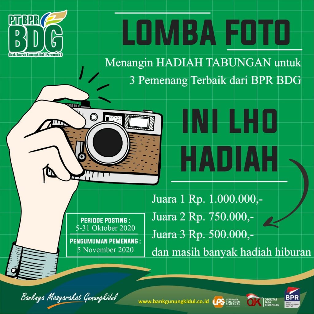 Ayo ikuti #lombafotobdg2020 Eksiskan Dirimu, ekspresikan gayanya, dan Raih Hadiahnya!!!..#Hadiah :Juara 1 : Tabungan Rp 1jtJuara 2 : Tabungan Rp 750rbJuara 3 : Tabungan Rp 500 rbDan masih banyak hadiah hiburan..#Syarat :1. Follow ig @bankgunungkidul2. Pilih spot foto di Kantor BPR BDG terdekat di daerahmu (Kantor Pusat atau Kantor Kas);3. Pengambilan foto memperlihatkan protokol kesehatan;4. Ekspresikan foto terbaik […]