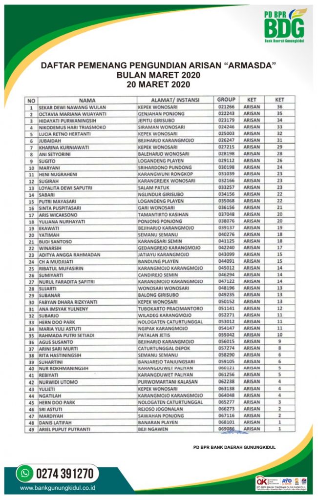 Daftar Pemenang Arisan Armasda Periode Maret 2020