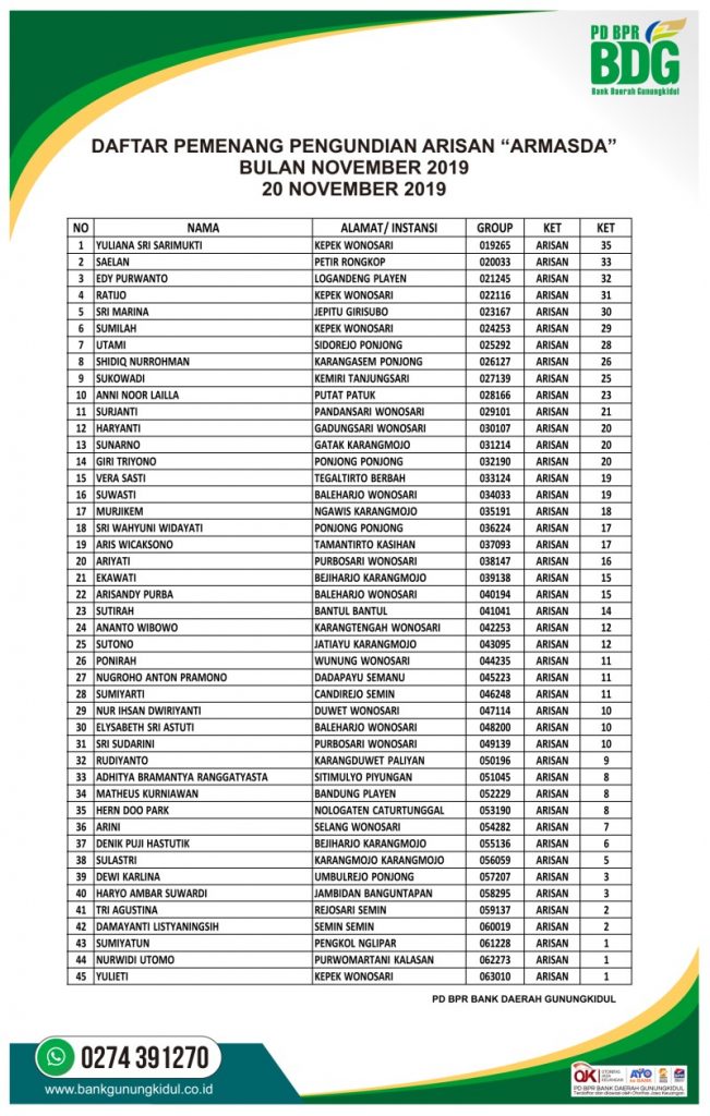 Daftar Pemenang Arisan Armasda Periode November 2019