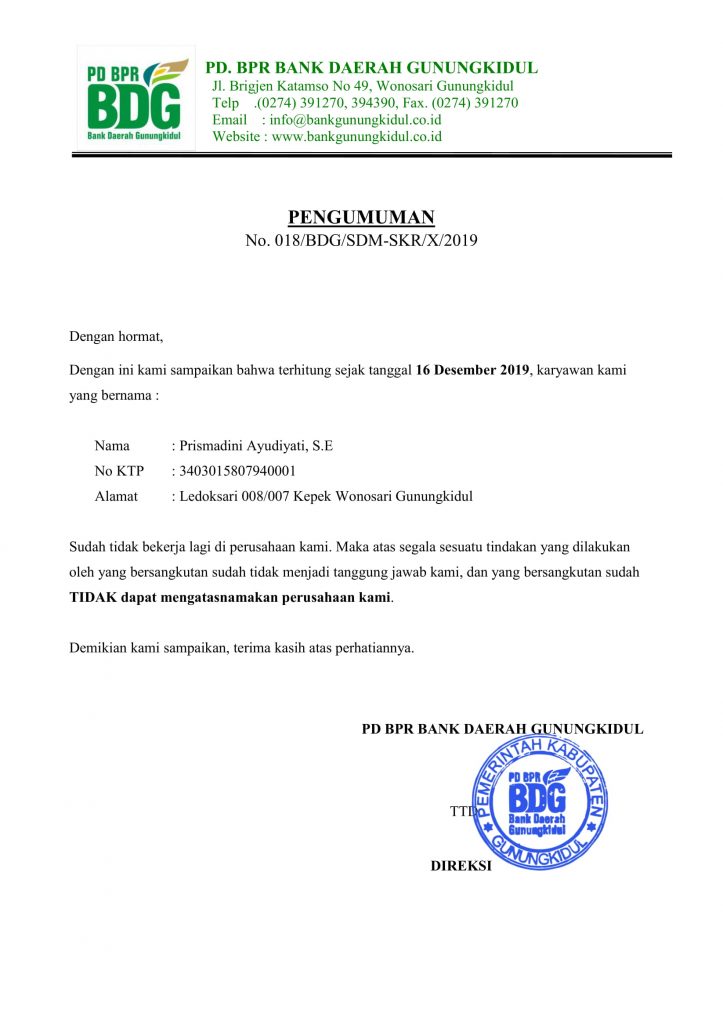 Penarikan Hadiah Tabungan Handayani, Kredit Karyawan serta Acara Senam dan Jalan Sehat bersama BDG Tahun 2019. Pengundian Hadiah pada tanggal 18 Oktober 2019 di Kantor Pusat PD BPR Bank Daerah Gunungkidul. Proses pengundian Disaksikan oleh tamu undangan, Pihak Dinas Sosial DIY, Notaris dan Kepolisian.