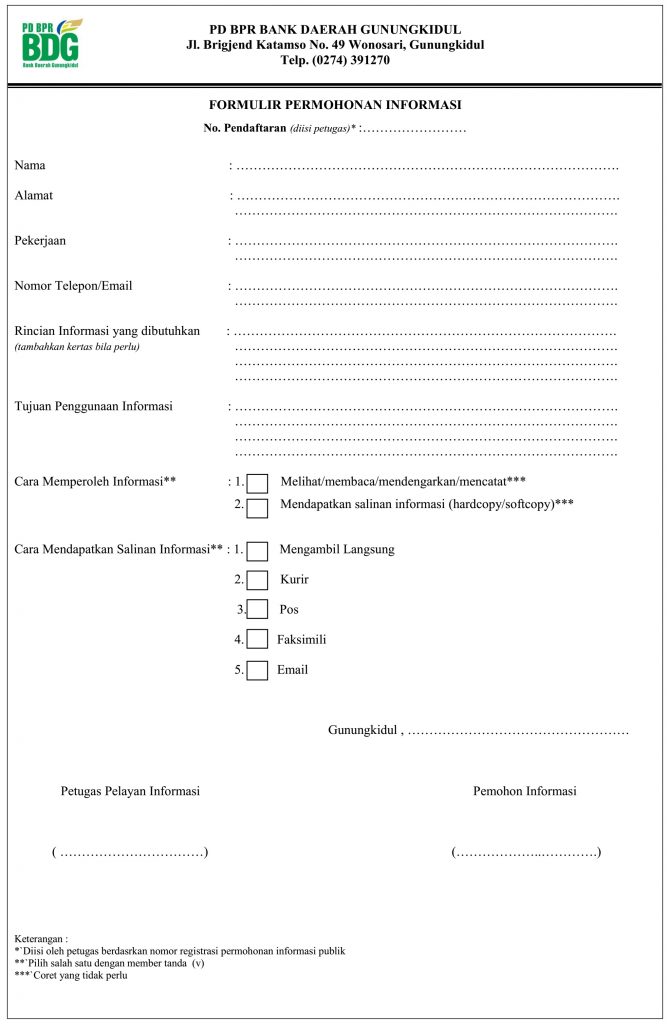 KLASIFIKASI JENIS INFORMASI A. Informasi Yang Diumumkan Secara Berkala 1. Visi Misi PT BPR Bank Daerah Gunungkidul (Perseroda) 2. Profil PT BPR Bank Daerah Gunungkidul (Perseroda) 3. Profil Pengurus PT BPR Bank Daerah Gunungkidul (Perseroda) 4. Perda PT BPR Bank Daerah Gunungkidul (Perseroda) 5. Laporan Keuangan Publikasi PT BPR Bank Daerah Gunungkidul (Perseroda) 6. Laporan Tata kelola PT BPR Bank Daerah […]
