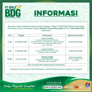 Kami Informasikan rencana tutup tahun 2022 dan hari libur tahun baru 2023 Bank daerah Gunungkidul [...]
