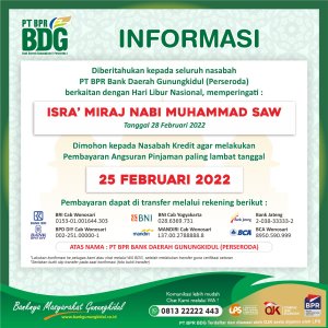 Pengumuman Jam Operasional Kantor Pusat dan Kantor Kas mulai Senin, 04 April 2022 [...]