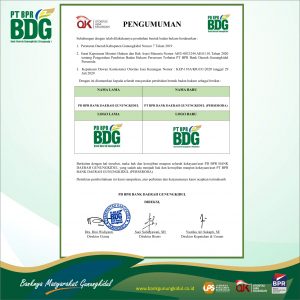 PENGUMUMAN PERUBAHAN BADAN HUKUM PT BPR BANK DAERAH GUNUNGKIDUL (Perseroda) [...]