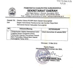 PENGUMUMAN Diberitahukan kepada segenap nasabah dan relasi PD BPR Bank Daerah Gunungkidul (BDG), bahwa sehubungan [...]