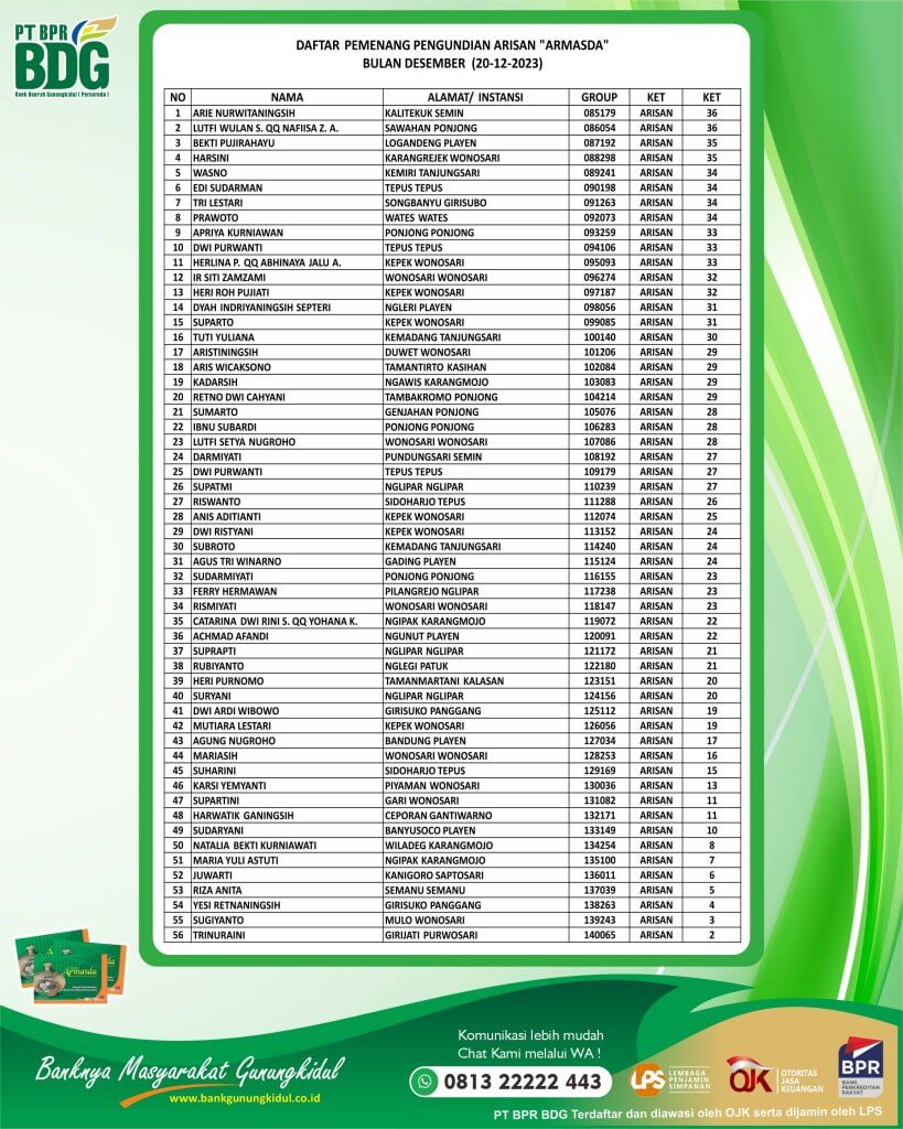 Pemenang Armasda, Pengumuman DAFTAR PEMENANG PENGUNDIAN ARISAN “ARMASDA” BULAN DESEMBER 2023 DAFTAR PEMENANG PENGUNDIAN ARISAN “ARMASDA” BULAN DESEMBER 2023 SELAMAT HARI BELA NEGARA 2023 SELAMAT HARI IBU