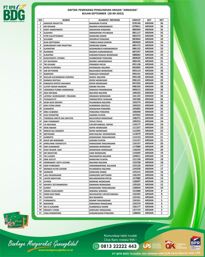 Pemenang Armasda, Pengumuman DAFTAR PEMENANG PENGUNDIAN ARISAN “ARMASDA” BULAN SEPTEMBER 2023 DAFTAR PEMENANG PENGUNDIAN ARISAN “ARMASDA” BULAN SEPTEMBER 2023 PENGHARGAAN INFOBANK BPR AWARD 2023 SELAMAT MEMPERINGATI MAULID NABI MUHAMMAD SAW