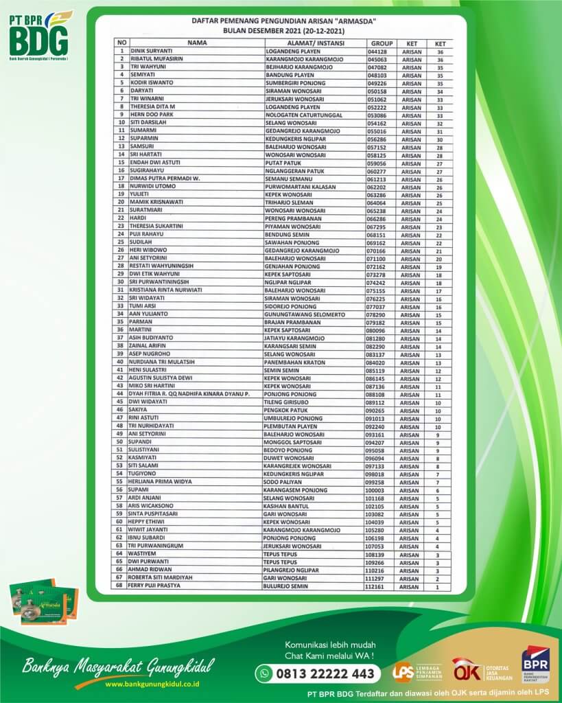Pemenang Armasda, Pengumuman Daftar Pemenang Pengundian Armasda Bulan Desember 2021 Daftar Pemenang Pengundian Armasda Bulan Desember 2021 SELAMAT HARI BELA NEGARA – 19 DESEMBER 2021 SELAMAT HARI IBU – 22 DESEMBER 2021