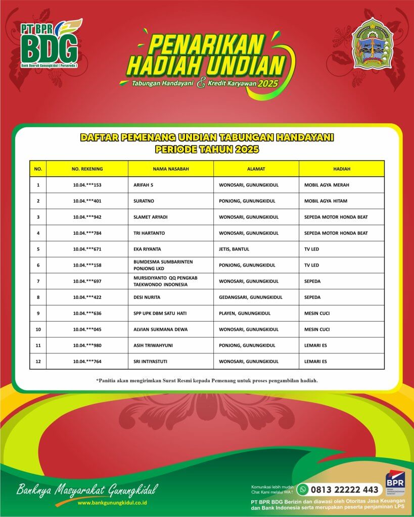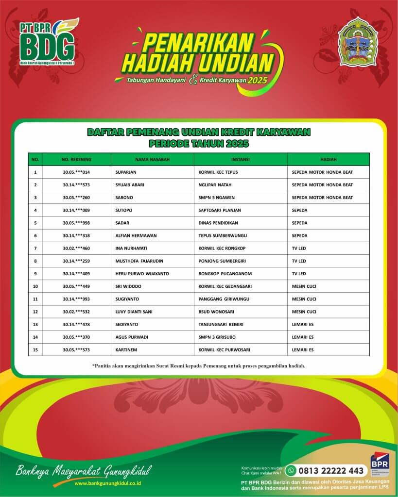 DAFTAR PEMENANG UNDIAN TABUNGAN HANDAYANI DAN KREDIT KARYAWAN 2025