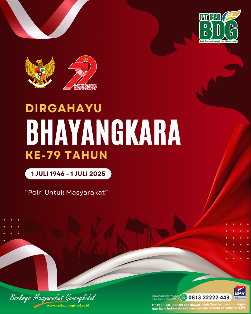 Pengumuman HUT BHAYANGKARA KE-79 TAHUN Dirgahayu Bhayangkara Ke-79 Tahun (1 Juli 2025)Polri Untuk Masyarakat KREDIT GERCEP SELAMAT HARI JADI BANK INDONESIA KE – 72