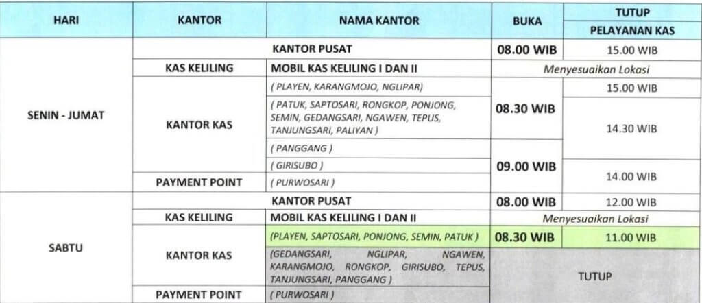 Komplek Kantor PEMDA Gunungkidul Gedung Unit 2 Sisi Utara Jl. Brigjen katamso No 1 Wonosari, Kec. Wonosari, Kabupaten Gunung Kidul |