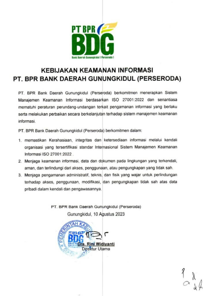 PT. Bank Perekonomian Rakyat Bank Daerah Gunungkidul (Perseroda) berizin dan diawasi oleh Otoritas Jasa Keuangan, Bank Indonesia, dan sebagai Peserta Penjaminan LPS hingga 2 Miliar