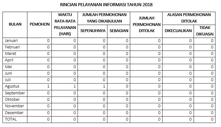 TABEL RINCIAN PELAYANAN PPID PERIODE JANUARI – DESEMBER 2018