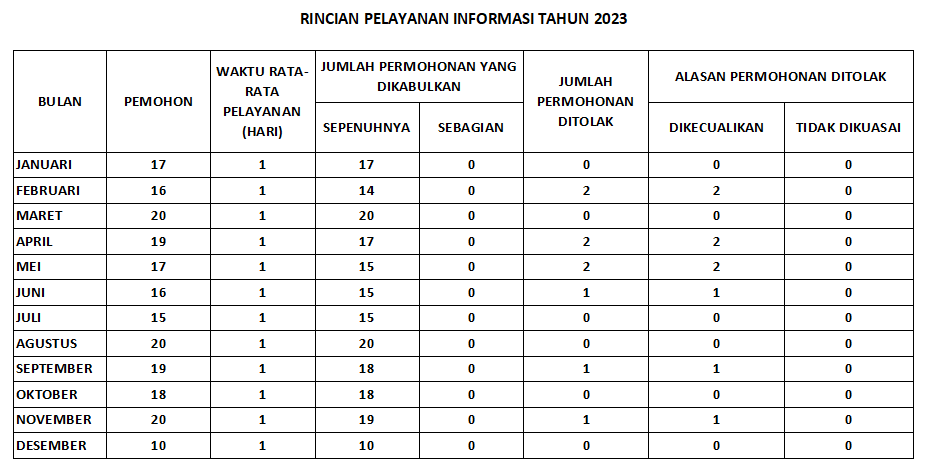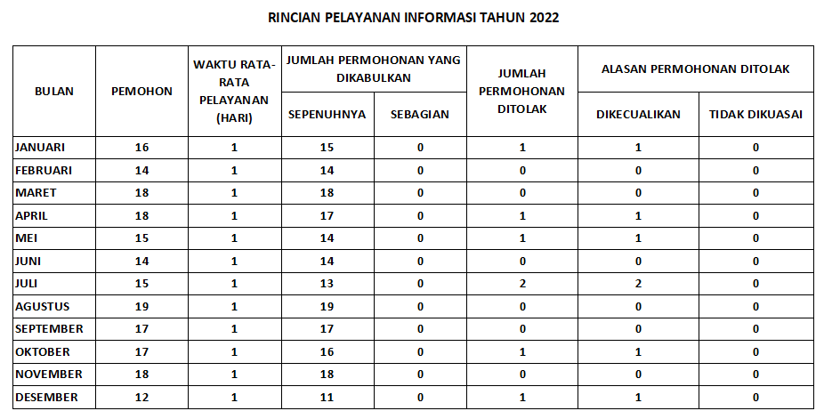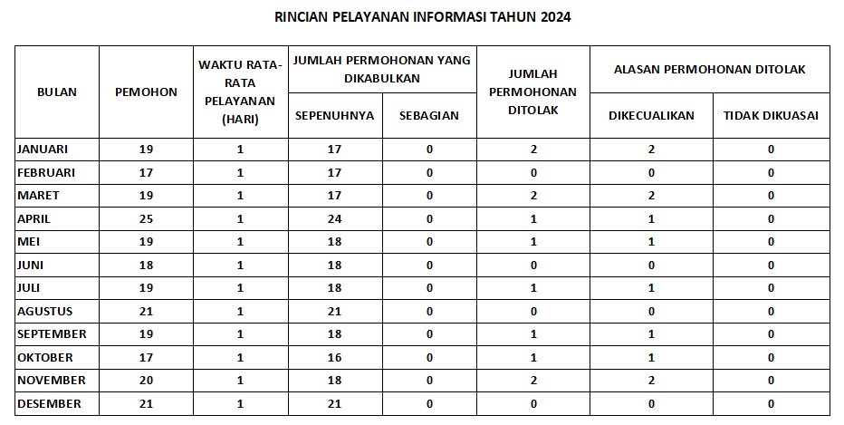 TABEL RINCIAN PELAYANAN PPID PERIODE JANUARI – DESEMBER 2021