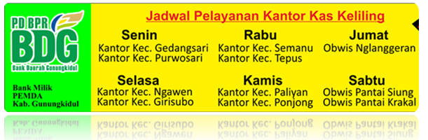 Berikut Jadwal Pelayanan Kantor Kas keliling PD BPR Bank Daerah Gunungkidul :