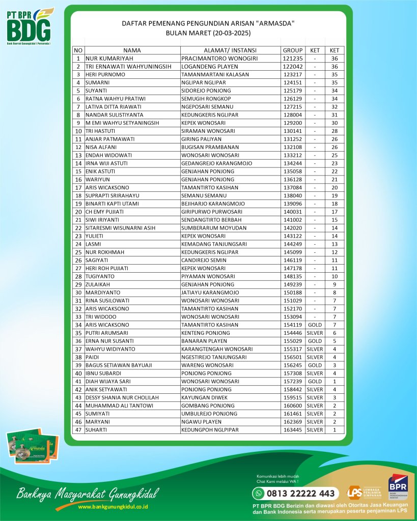DAFTAR PEMENANG UNDIAN ARISAN “ARMASDA” MARET 2025 [...]