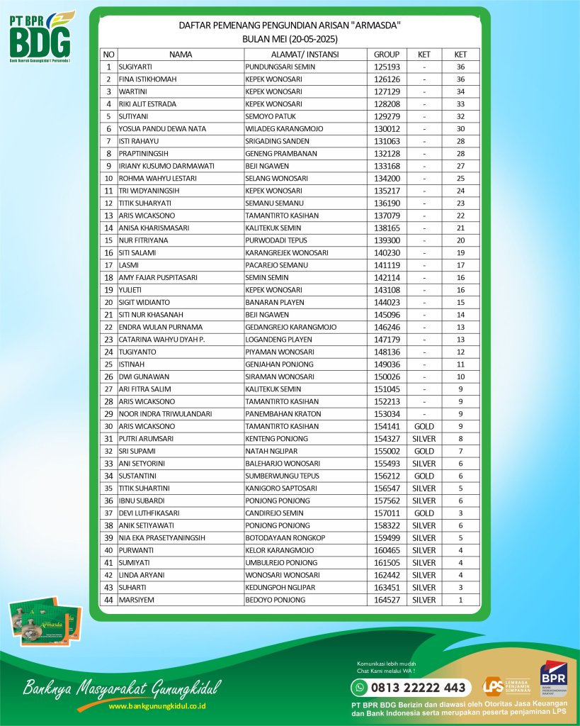 DAFTAR PEMENANG UNDIAN ARISAN “ARMASDA” MEI 2025 [...]
