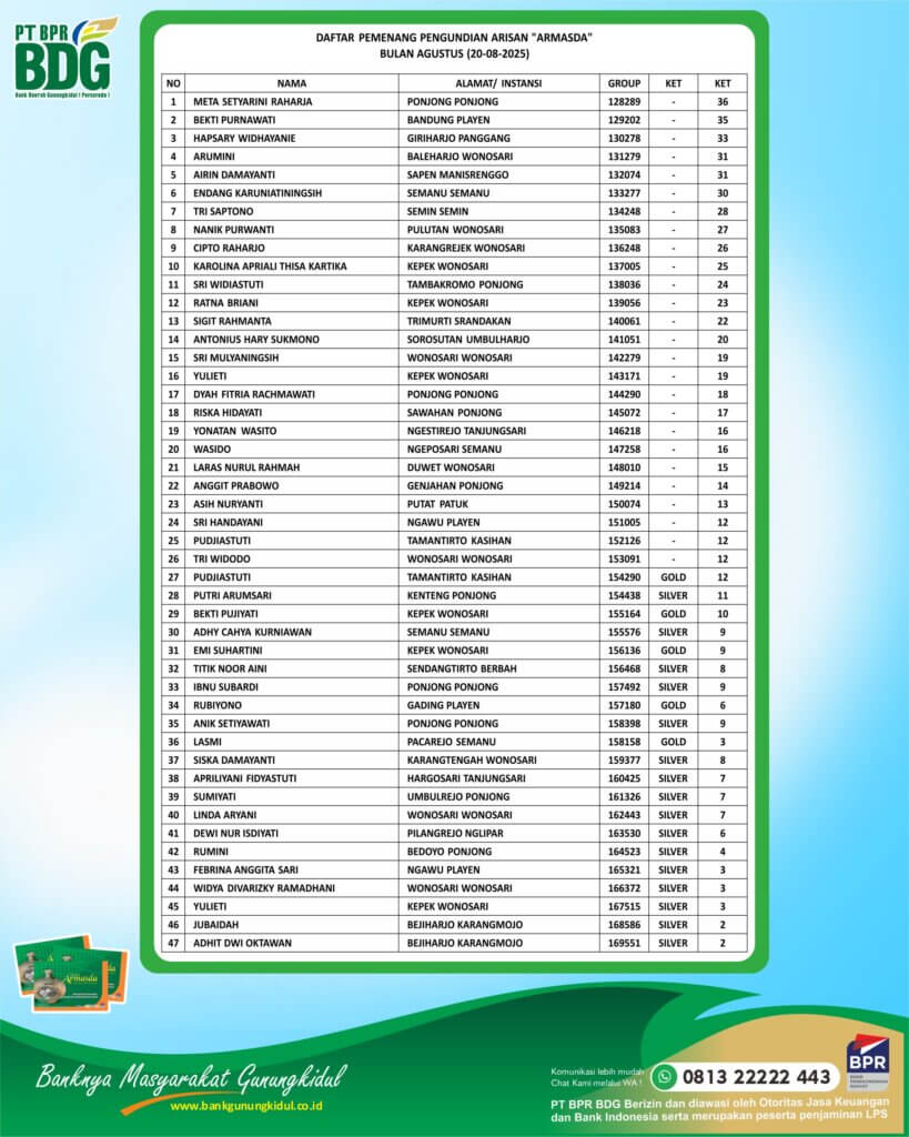 DAFTAR PEMENANG UNDIAN ARISAN “ARMASDA” AGUSTUS 2025 [...]
