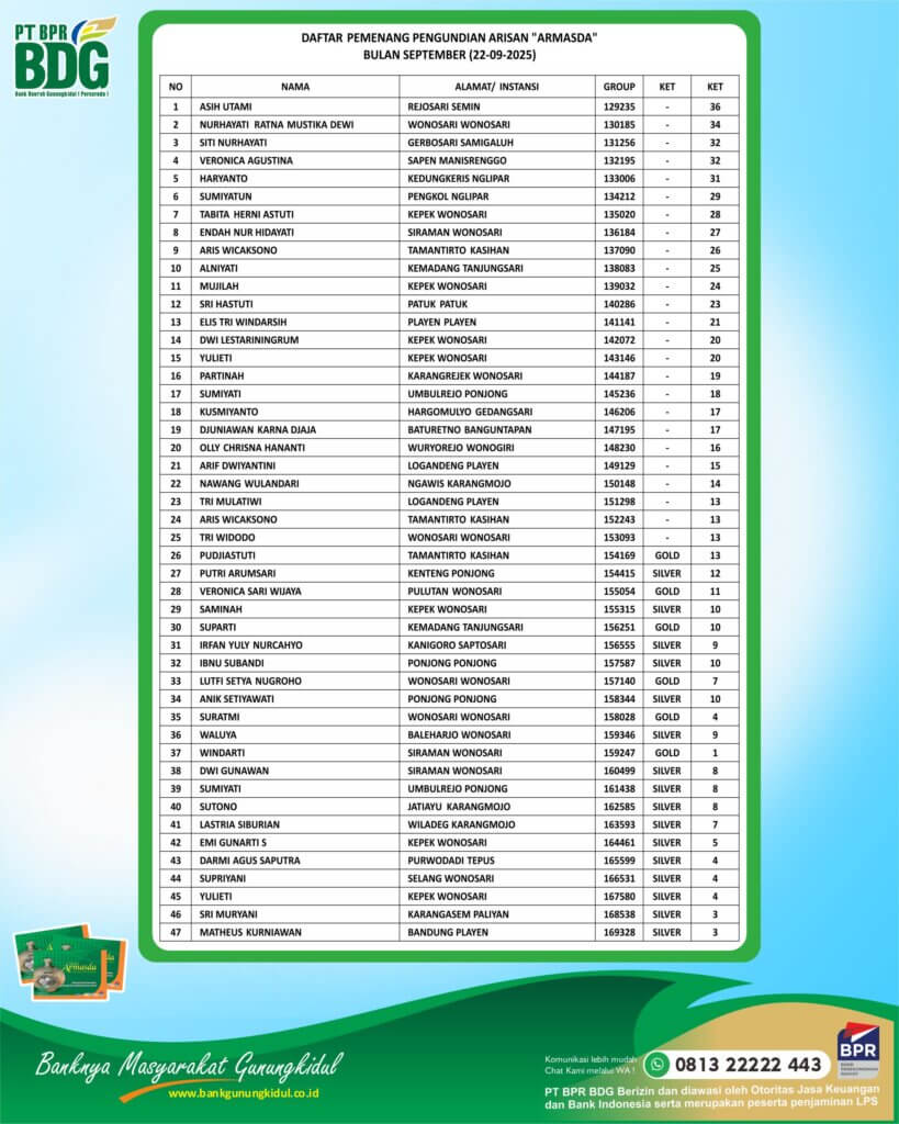 DAFTAR PEMENANG UNDIAN ARISAN “ARMASDA” SEPTEMBER 2025 [...]