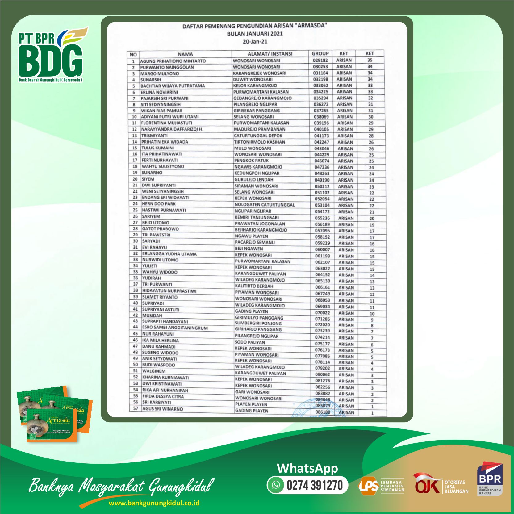 Pemenang Armasda, Pengumuman PEMENANG ARMASDA BULAN JANUARI 2021 PEMENANG ARMASDA BULAN JANUARI 2021 PENGUMUMAN JAM OPERASIONAL MULAI 2021 BERLAKU MATERAI RP 10000