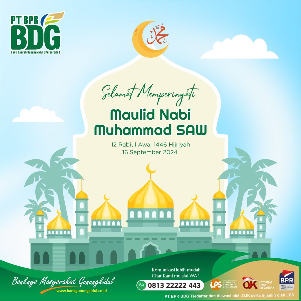 Pengumuman Selamat Memperingati Maulid Nabi Muhammad SAW (12 Rabiul Awal 1446 Hijriyah) Pengumuman Operasional PT BPR Bank Daerah Gunungkidul (Perseroda) pada Hari Maulid Nabi Muhammad SAW 2024 Pengumuman Operasional Kegiatan Internal PT BPR Bank Daerah Gunungkidul (Perseroda) pada Sabtu, 21 September 2024