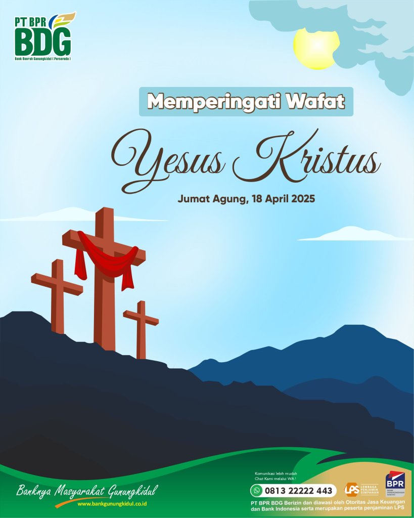 Pengumuman Selamat Memperingati Wafat Yesus Kristus Selamat Memperingati Wafat Yesus KristusJumat Agung, 18 April 2025 SELAMAT HARI RAYA IDUL FITRI Selamat Hari Raya Paskah